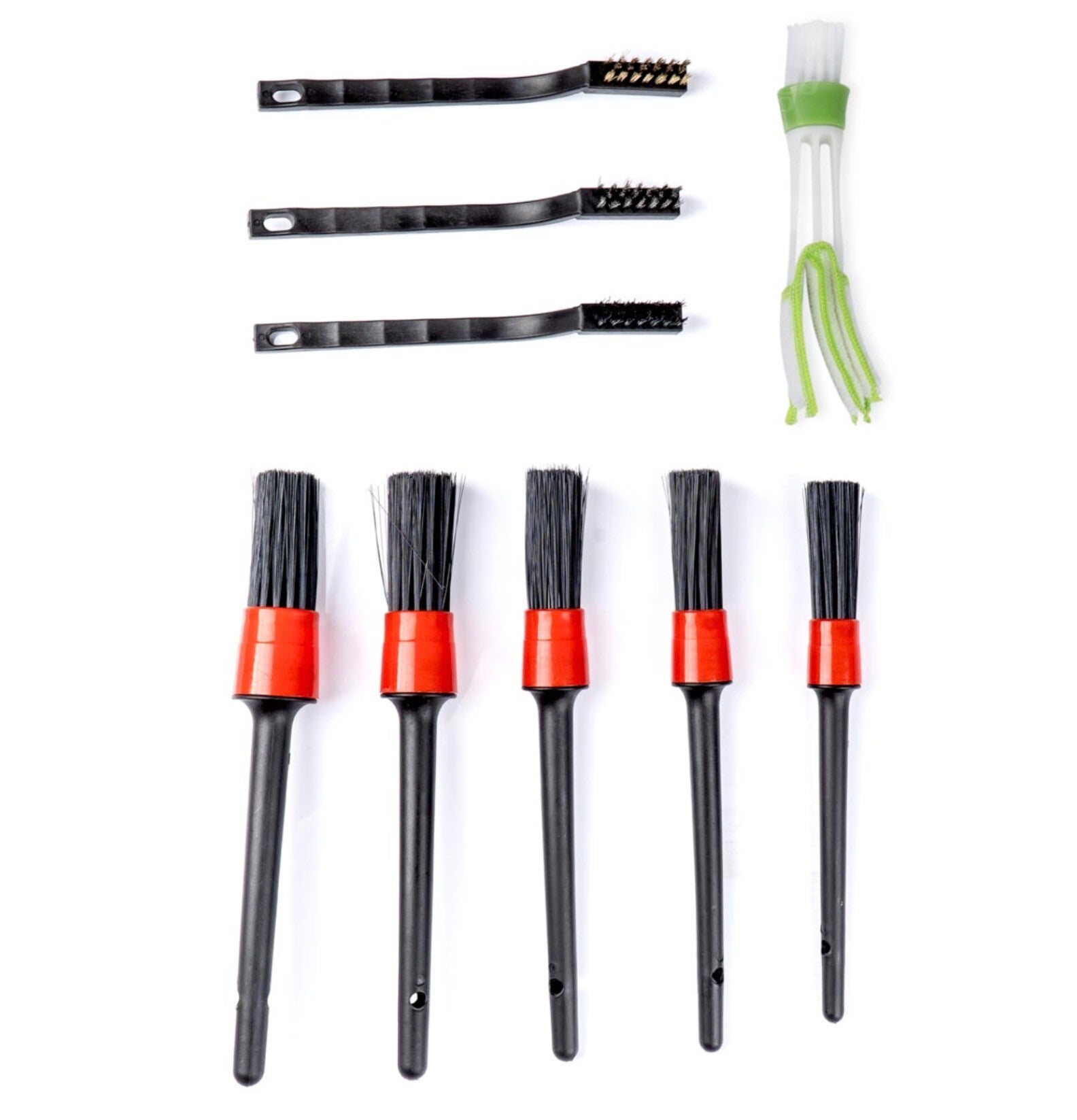 Brosses de haute qualité pour le nettoyage des détails, des coins et recoins et des zones difficiles à atteindre. Les poils fins et le capuchon en plastique garantissent un nettoyage sûr et efficace de chaque élément. Idéales pour l'intérieur et l'extérieur de la voiture.